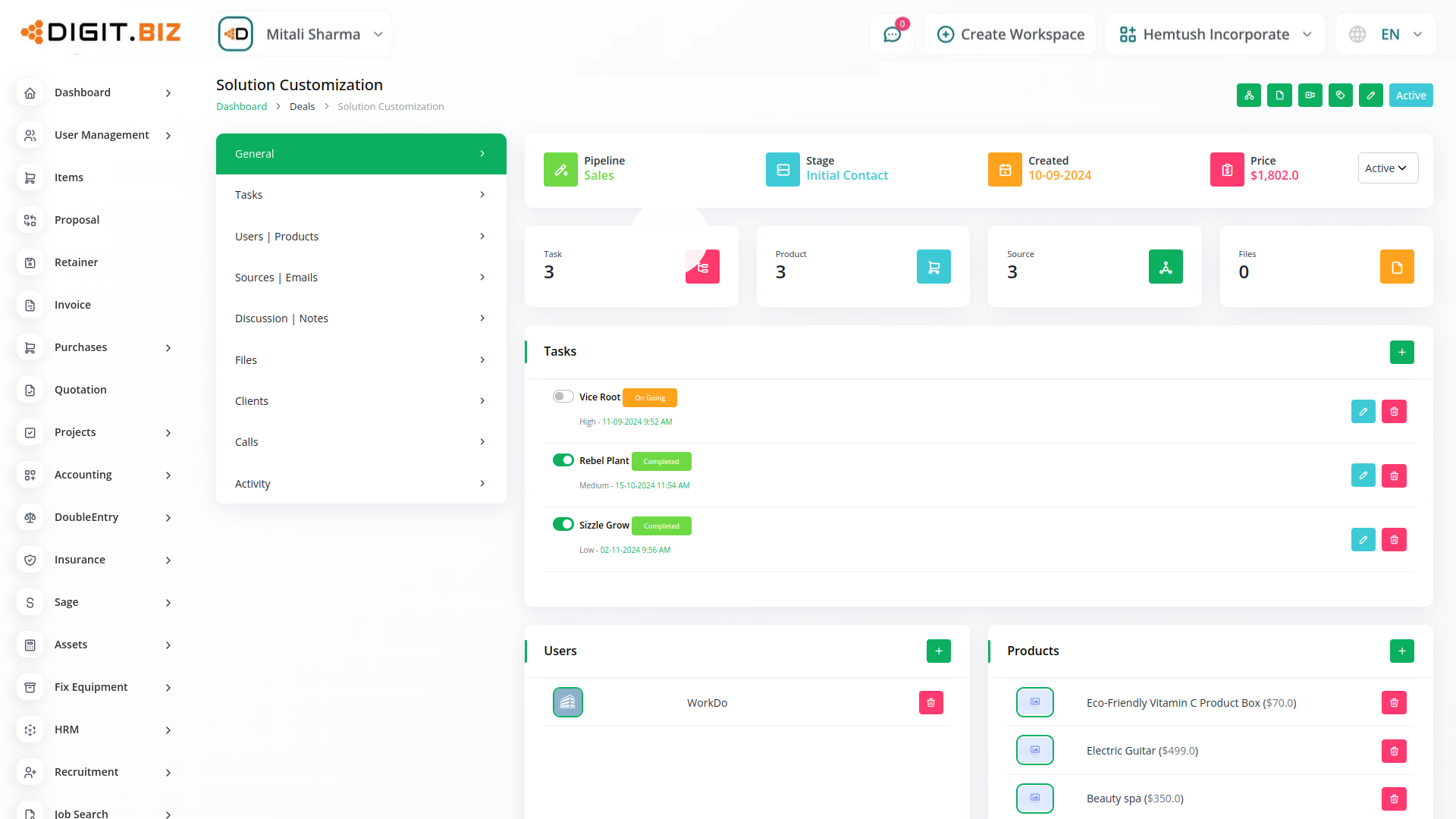 Get an actionable analysis of all your leads, deals, users, invoices, and products - in one interactive dashboard. Create and implement effective business plans, set a maximum number of deals, payment options and do so much more.